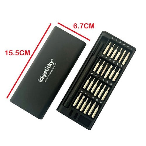 ICKYSTICKY 24-IN-1 PRECISION SCREWDRIVER SET is a multifunctional set suitable for the disassembly and maintenance of small household appliances, watches, camera's, glasses, laptops, headsets and so much more.