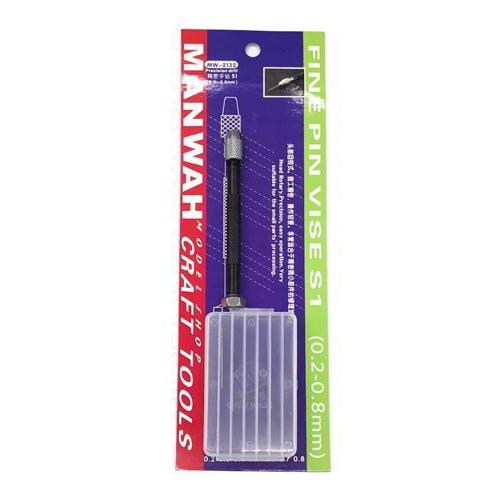 ManWah 2132 Fine Pin Vise S1 With 7 Drill Bits 0.2 - 0.8mm