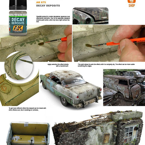 This deposit type paint has been developed to give our models a worn and faded appearance on the surface of abandoned objects, vehicles or buildings.The finish is extremely authentic.