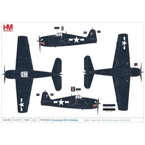 Hobby Master HA0309 1/32 Grumman F6F-5 Paper Doll VF-27 USS Princeton CVL-23 October 1944