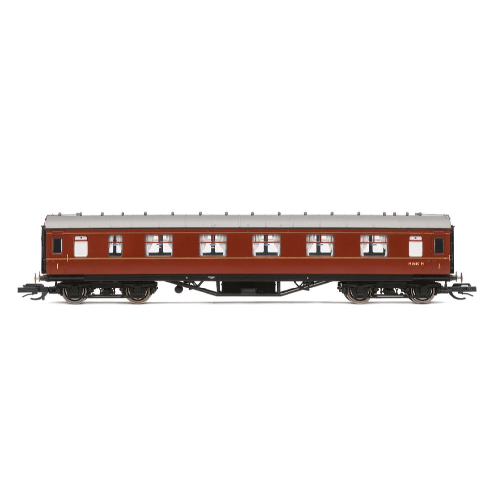 These new coaches were steel clad, the first such for the LMS and had seating for 56, 300 such examples were built. In LMS service these coaches were painted in their striking maroon livery with LMS insignia adorning the side. The coaches, being relatively new at the time of nationalisation lasted well into the swansong days of BR, appearing in both its carmine and cream livery and later BR Maroon when BR decided to shift aesthetics back to regional recognition.