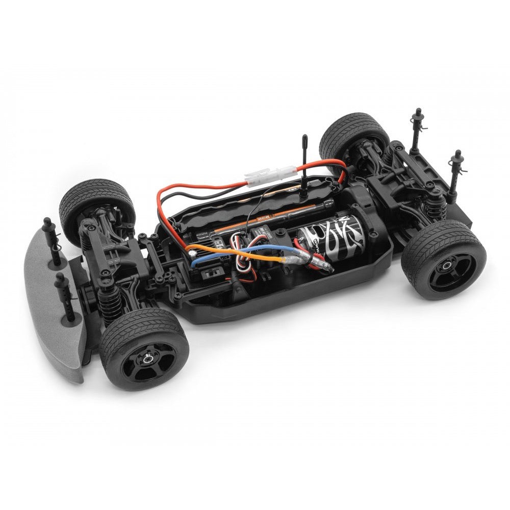 The HPI Racing E10 features a set of treaded rubber tires for maximum grip on just about every paved surface. You'll get great acceleration, braking and cornering performance from these semi-slick, grippy rubber tires! The tires are molded in a durable, long-wearing rubber compound that will give you a long life for hours of fun and enjoyment. Each tire is securely glued to a brand new, cool-looking TA2 competition style wheel, molded from flexible yet firm plastic. The wheels look great on the shelf or on the track! If you want to customize your E10, you can always swap out or replace the wheels and the tires mounted to them, just like a real car!