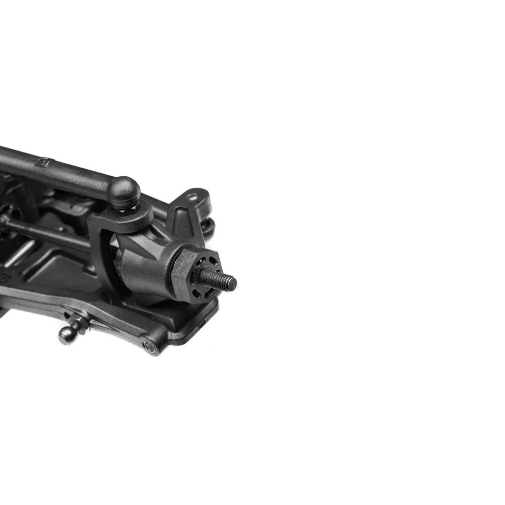 The suspension of the Sport 3 uses the race-proven double-wishbone suspension design, similar to a full-scale modern race car. You’ll be able to control the anti-squat and anti-dive of the front and rear arms using the standard pivot blocks, and the option parts allow you to adjust the sweep and toe angles. You'll also be able to easily change the roll center front and rear with the racing-style vertical ballstud mounting on both the inner and outer camber link mounts. Multiple shock mounting positions provide a full range of shock suspension angle adjustment to suit different road conditions.