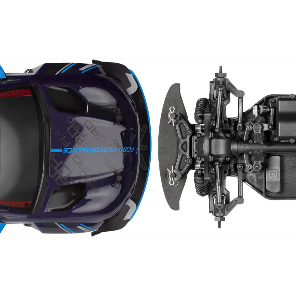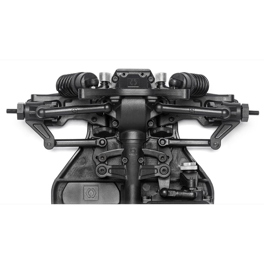 The main chassis is formed from a single piece of reinforced plastic and features the drivetrain tunnel molded right down the middle, just like a real car. It's a step beyond any plastic tub chassis car available today.