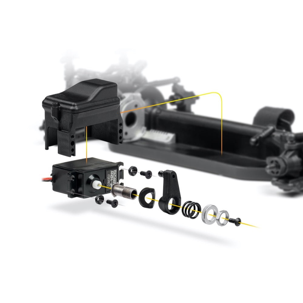 The Sport 3 includes an adjustable multipiece cam-style servo saver, which protects the servo from crash damage. In the event of a crash or collision, the front wheels usually take a big portion of the blow and transmits the impact directly to the steering servo. The strong spring-loaded cam action of the servo saver is designed to absorb this force and protect the servo gears from the impact!