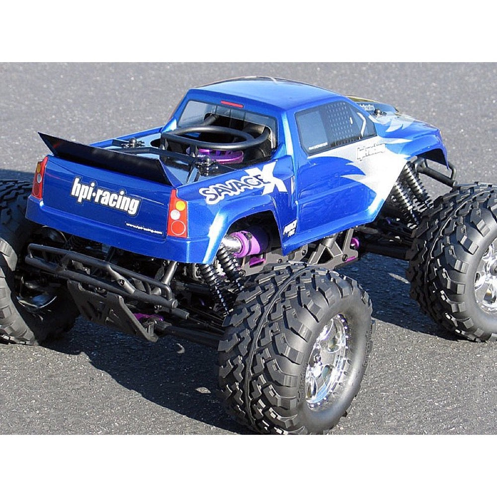 Customize your HPI Savage X with this clear version body shell. This is a factory body designed to fit the Savage X truck perfectly, with provisions for the shock towers, engine and exhaust. Add your own paint job and you're ready to race! The differences between the Savage 25 bodies and this new Savage X body are the noticeably wider fenders with squared-shape fender well openings, taller hood cowling, and rear deck bracing. Yes, this new Savage X body will fit any Savage.