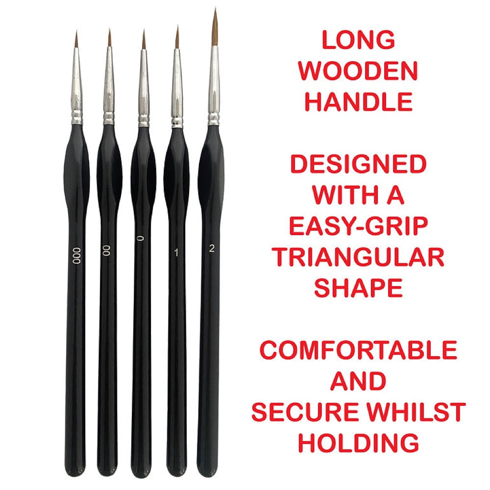 ICKYSTICKY Langhao Wolf (Weasel) Hair Detail Paint Brushes are great for the novice and experienced hobbyist. From short pointed to very finely pointed, our detail paint brushes are perfect for painting miniatures, models, figurines, action figures, army figures, and doll houses. or other tiny detailing crafts.