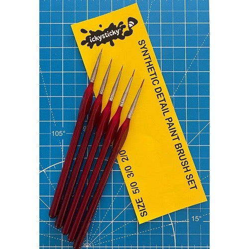 ICKYSTICKY Synthetic Hair Detail Paint Brushes are great for the novice and experienced hobbyist. From short pointed to very finely pointed, our detail paint brushes are perfect for painting miniatures, models, figurines, action figures, army figures, and doll houses. or other tiny detailing crafts.