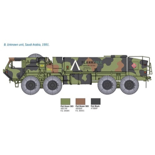The acronym HEMTT (Heavy Expanded Mobility Tactical Truck) identifies a range eight-wheel drive off-road capable heavy truck, produced from the mid-80s for the United States Army. Thanks to its features, the HEMTT is able to guarantee a great off-road mobility and significant transportation performance. It has become the real “workhorse” of the Army capable of carrying ammunition and equipment in a very effective way. The outfitted versions, as the M978 Tanker, has been designed to perform, in a very precise and effective way, the different military logistic needs. Thanks to the loading capacity of over 9,500 liters, the tank installed on the vehicle is able to transport a significant quantity of fuel. The M978 has been effectively used by the U.S. Army in various severe operational areas such as Iraq and Afghanistan.