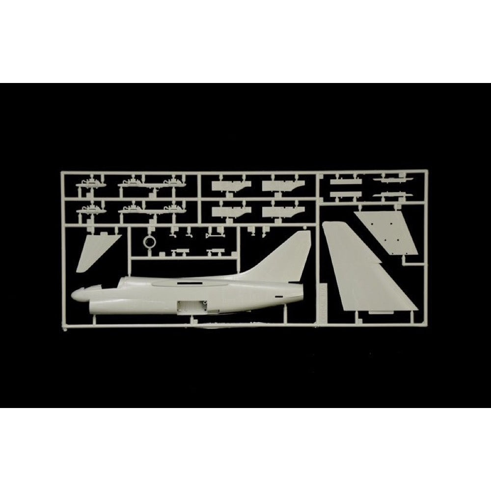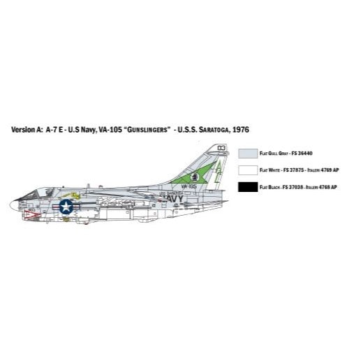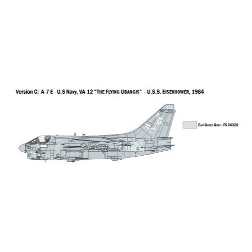 The LTV A-7 Corsair II was designed and implemented in the first half of the 1960s to satisfy the specific United States Navy request to have a new carrier-capable light attack aircraft able to replace the Douglas A-4 Skyhawk and the piston-powered Douglas A-1 Skyraider. It was directly developed by the fighter Vought F-8 Crusade airframe. The A-7 was characterised by the large frontal air intake under tha cabin, by the 35° foldable swept wing to optimize the use and the storage on the aircraft carriers flight decks and by the adoption of a modern Head-up-Display to enhance the operational effectiveness. Thanks to its underwing hardpoints the A-7 was able to carry an impressive offensive load based on conventional bombs, guided bombs as the Paveway and air-to-surface missiles. The A-7E was the last version produced for the U.S Navy with an improved operational capabilities and the possibility to use the Harpoon anti-ship missiles and the AGM-88 HARM anti-radiation missiles.