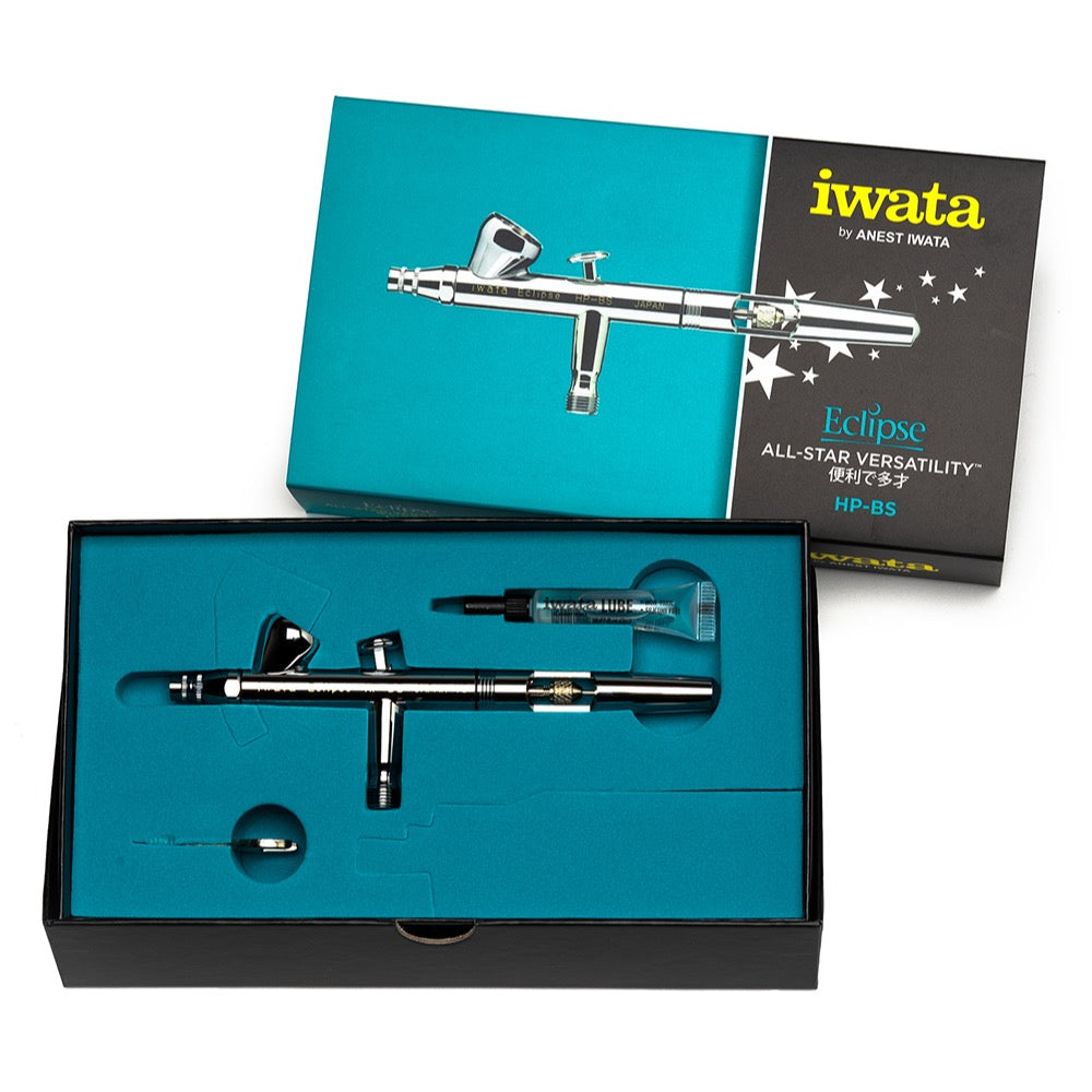 Iwata Eclipse Series airbrushes feature an exclusive compression fit nozzle that is easy to clean and assemble. The quick flush cutaway handle allows easy access to the needle so that you can quickly empty the paint reservoir for cleaning. Iwata's spring-steel needle resists breakage and our needle packings are solvent resistant for longevity. Iwata Eclipse airbrushes come with a head cap spanner that is used to remove the head cap when accessing the nozzle. Also included is Iwata Lube, which is used to lubricate the needle and main lever mechanism. Hugely popular, Iwata Eclipse Series airbrushes offer all-star versatility.