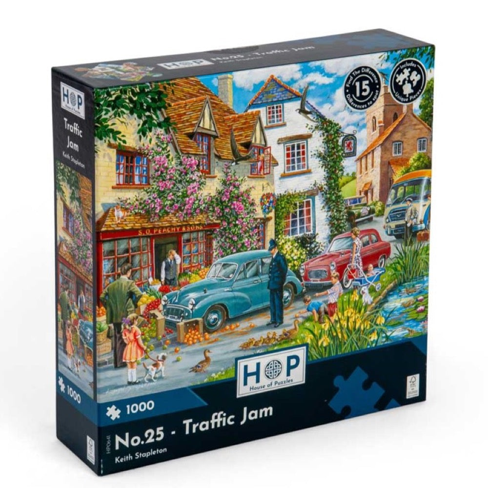 Put your powers of observation to the test with this captivating 1000 piece Find The Difference puzzle. Illustrated by artist, Keith Stapleton, No.25 - Traffic Jam adds an extra dimension to the fun with its brain-teasing spot the difference challenge!