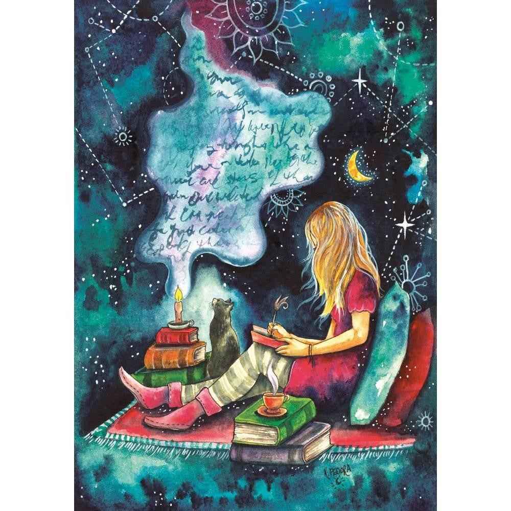 Step inside Kat Fedora's bookish world with the beautiful The Poet 1000 piece puzzle. Kat Fedora is a celebrated illustrator and this puzzle forms part of her second collection with Magnolia Puzzles