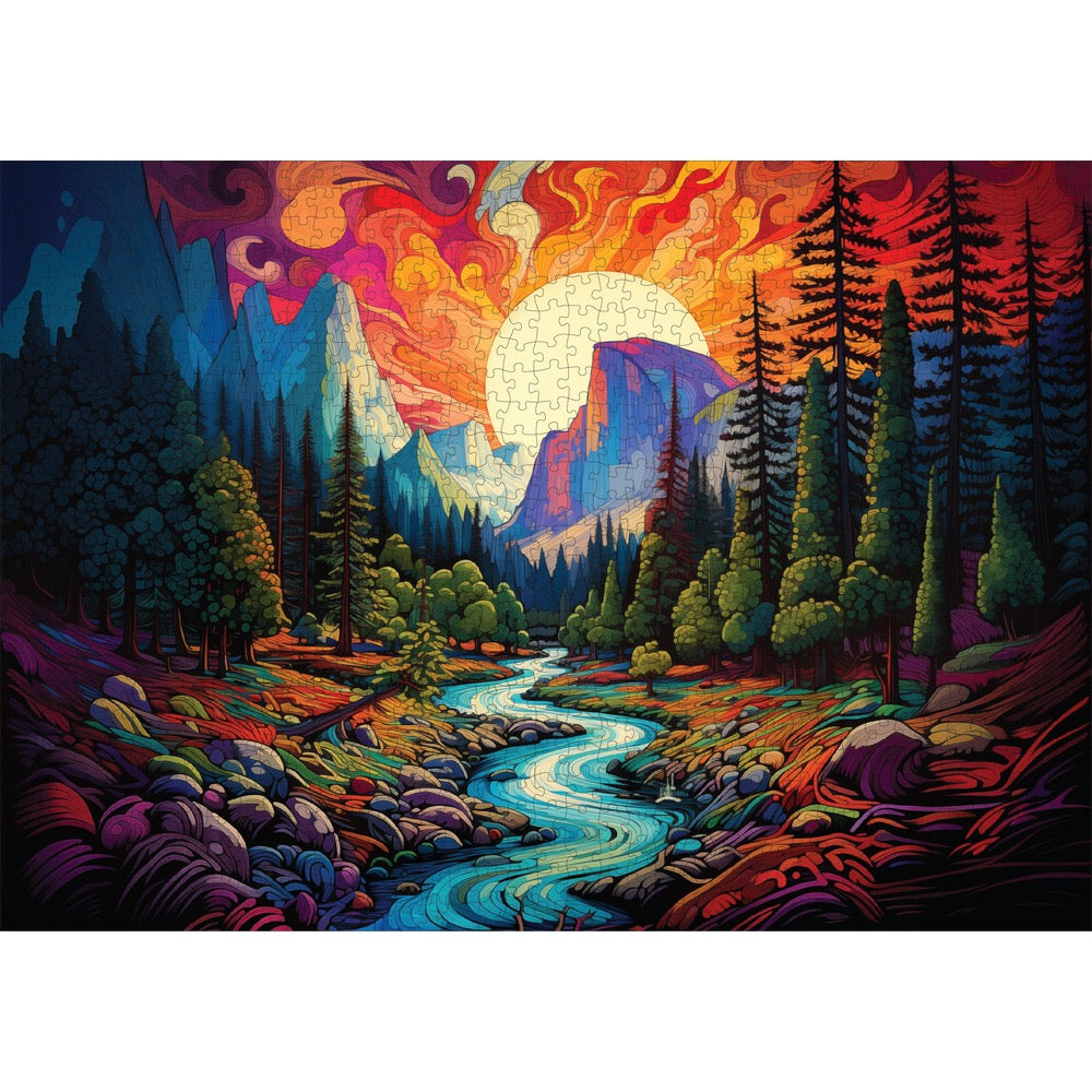 Immerse yourself in breathtaking scenery with the Chromatic Cliffs 1000-piece jigsaw puzzle. This stunning puzzle captures the awe-inspiring landscape of Yosemite, with the iconic Half Dome surrounded by towering cliffs, vibrant trees, and a colorful sunset casting brilliant hues across the scene. Perfect for adults and families, it offers a relaxing yet stimulating challenge.