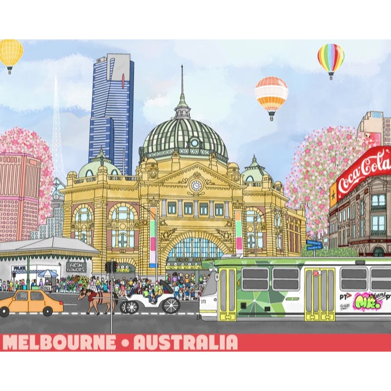 The Mr. Ink 500 piece Melbourne jigsaw puzzle is an illustration of Melbourne's most iconic landmarks. Melbourne is the first puzzle in the series from Mr. Ink