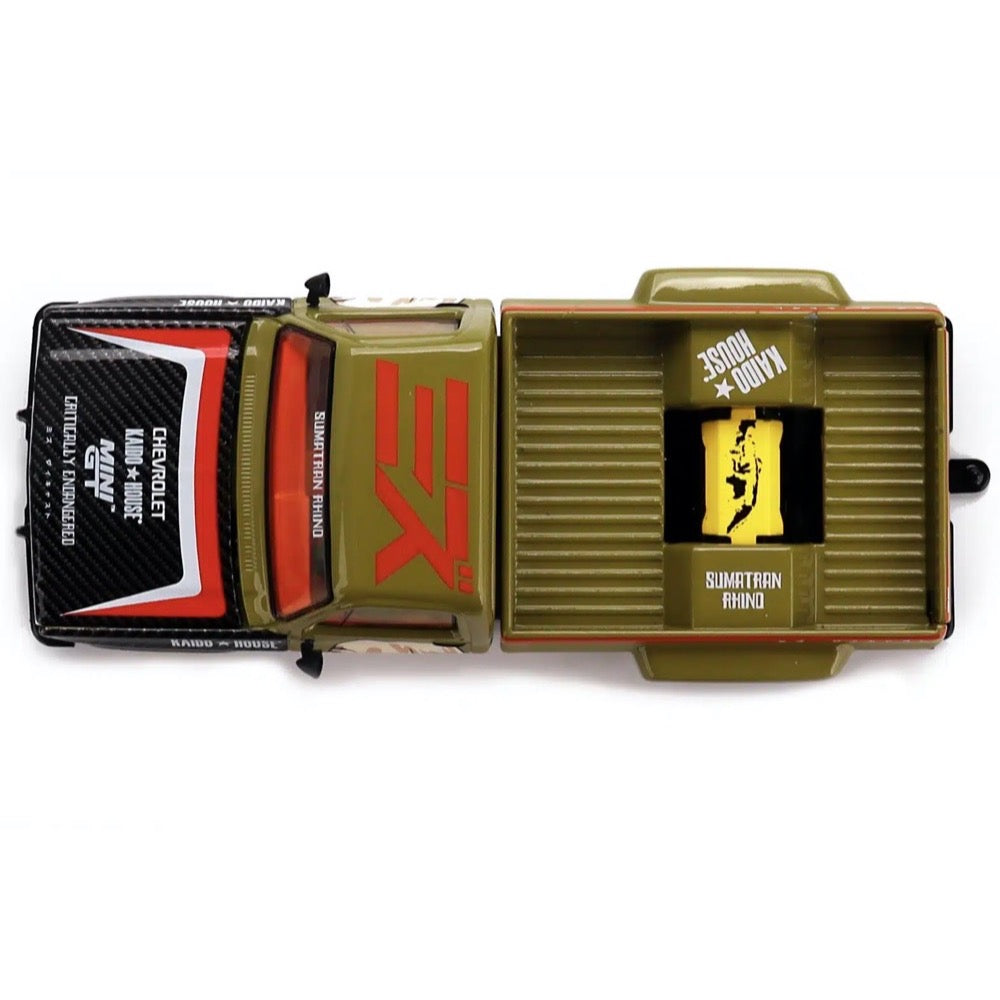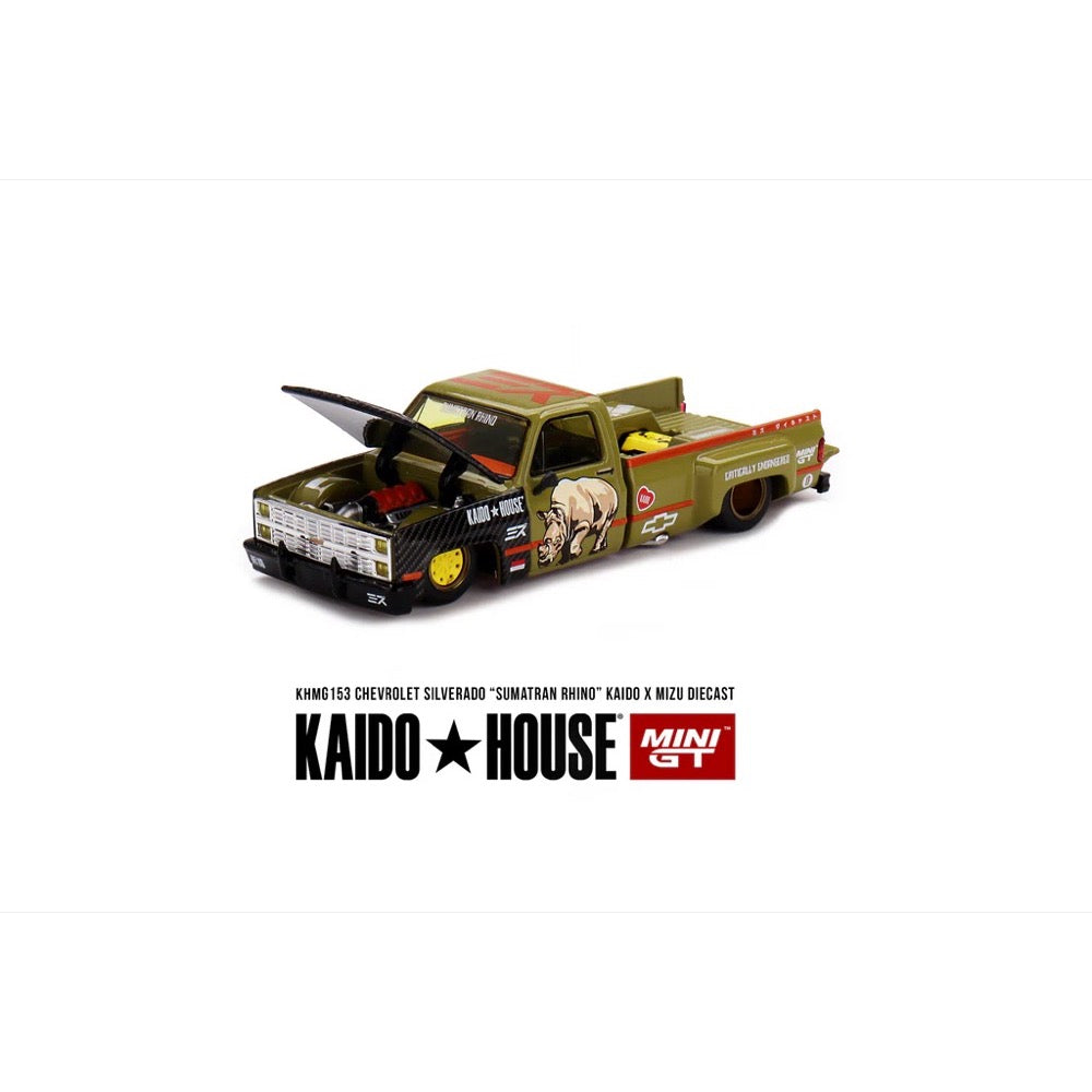 Experience the perfect blend of style and power with our Mini GT x Kaido House 1:64 Chevrolet Silverado “Sumatran Rhino”.