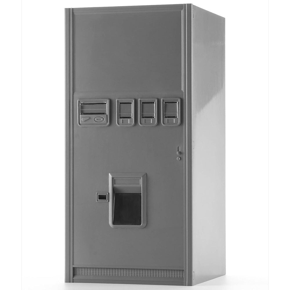 Give your 1/12-scale figures their very own retro hamburger vending machine! This new-mold kit from Hasegawa snaps together, so glue isn't needed, and the parts are molded in cream, gray and clear. There's a main panel display and a product button display, and it comes with hamburger box pattern stickers too, as well as two hamburger boxes. The product outlet cover is movable as well, and the hamburger boxes can be taken out and stored inside.