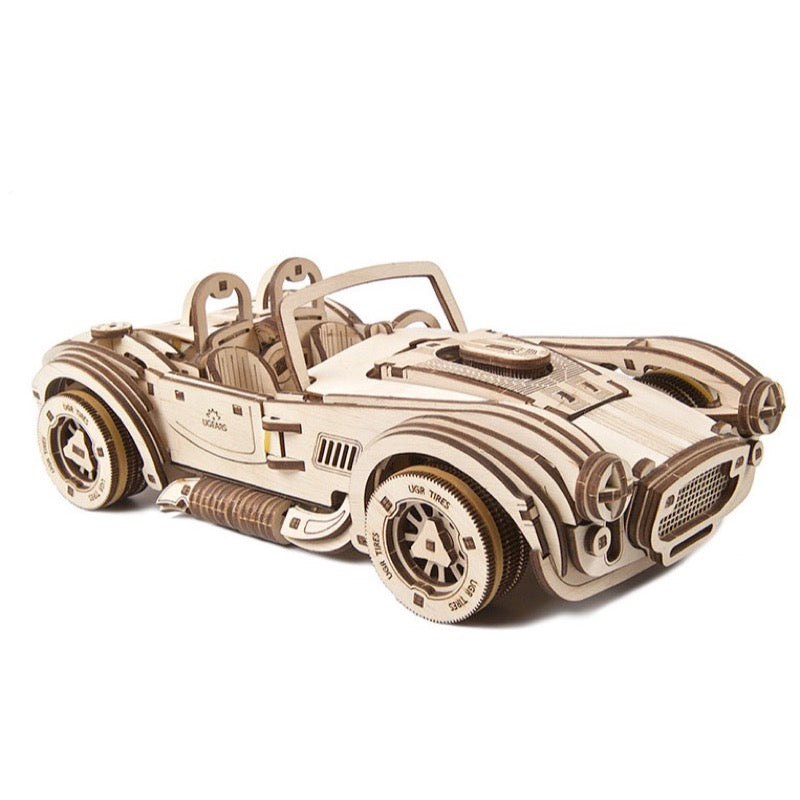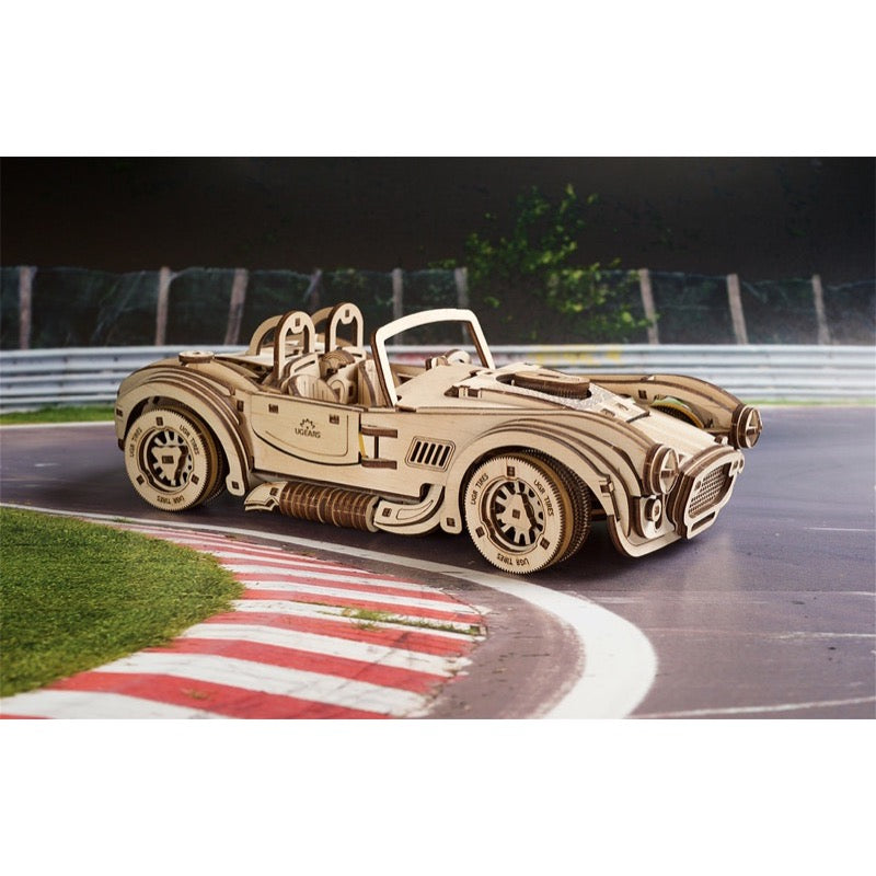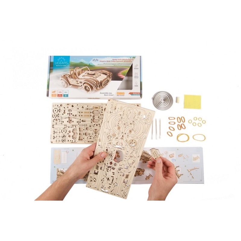 We know you love car modelling and you love the Ugears Dream Cabriolet, Roadster, and U-9 Grand Prix. Well, make room on the shelf, because a powerful new mechanical model just muscled its way into the Ugears Automotive collection. Introducing the Drift Cobra Racing Car, a beautifully-styled, two-seat convertible—our twist on what may be the most revered sports car of all time: the Shelby Cobra 427. The Cobra 427, produced between 1965-67, had a 7.0 litre 450-510 horsepower engine, did 0-60 mph in just over 4 seconds, and had a top speed of 185 mph.