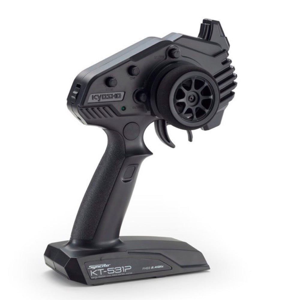 Includes stylish design of Syncro KT-531P transmitter. Features steering / throttle trim as well as dual rate adjustment of steering angle and control the flashing speed of LEDs. In addition, the transmitter has a Training Mode feature which limits speed of the car for easy learning(default setting at the time of shipment is Training Mode).