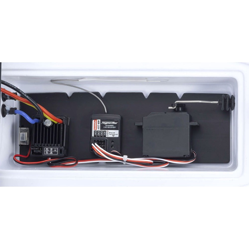 • Hull incorporates built-in waterproof radio box, further supported by waterproof speed controller and rudder servo for even greater protection.