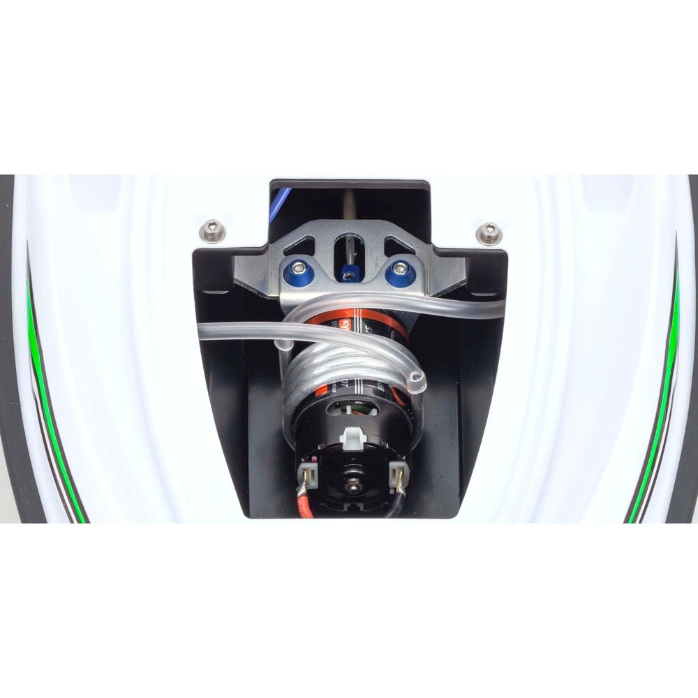 • Power of the water-cooled G14L motor is optimized with the large capacity 60A waterproof KYOSHO SPEED HOUSE KA060-91W speed controller with reverse function.