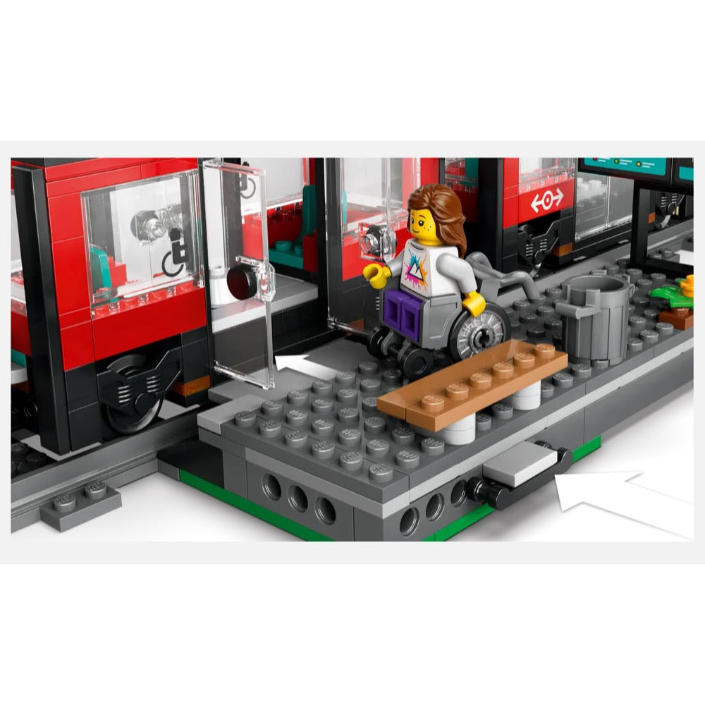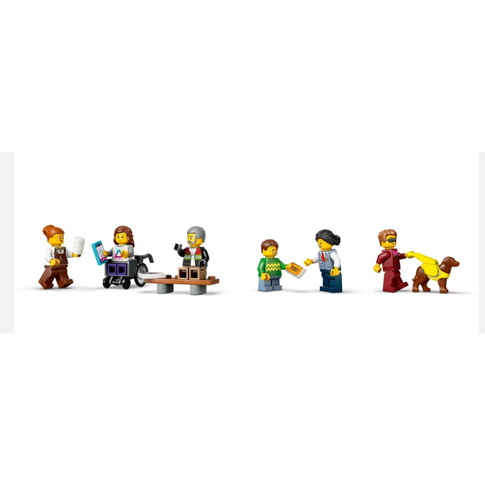 Kids get a toy streetcar, station and 6 minifigures, including characters with a guide dog and a wheelchair.
