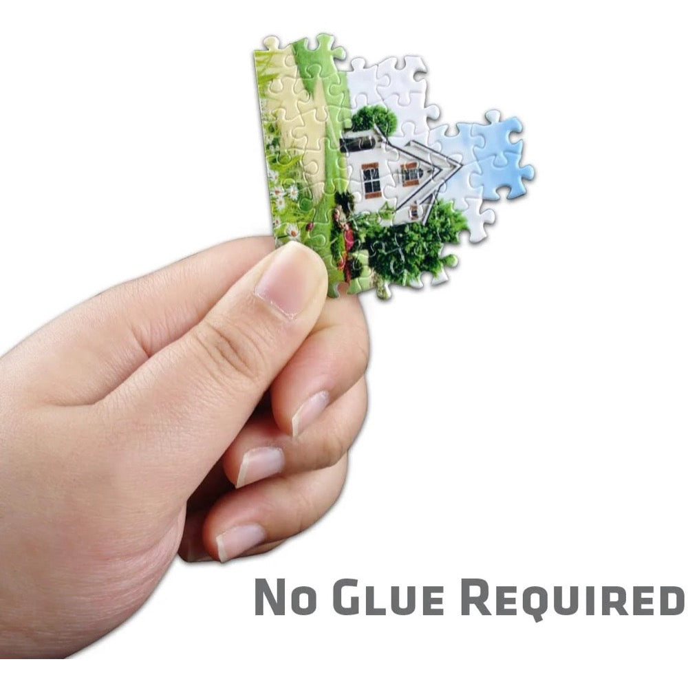 • The puzzle pieces are made of solid plastic and snap perfectly into place and no glue is required.