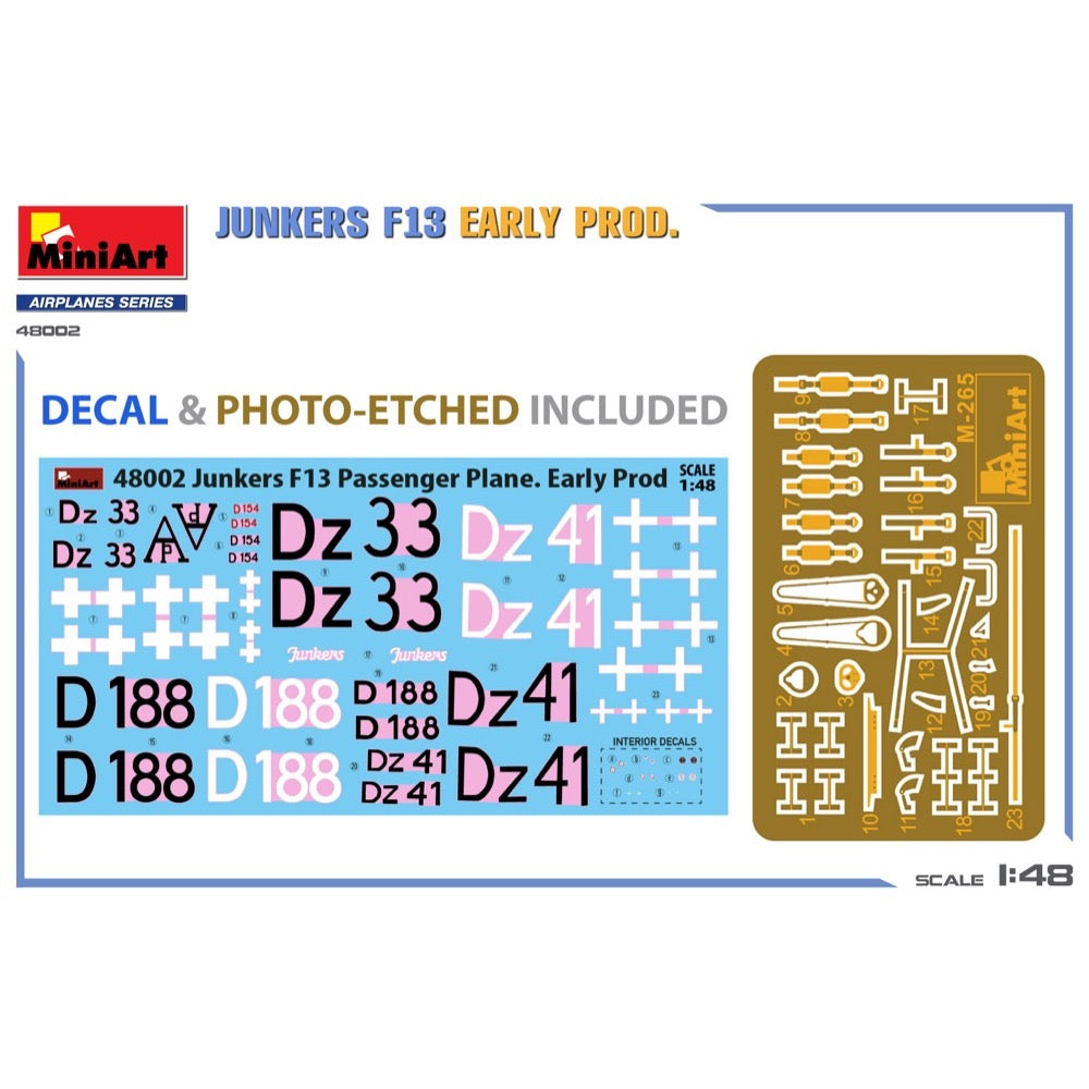 MiniArt 48002 1/48 Junkers F.13 Passenger Plane. Early Version