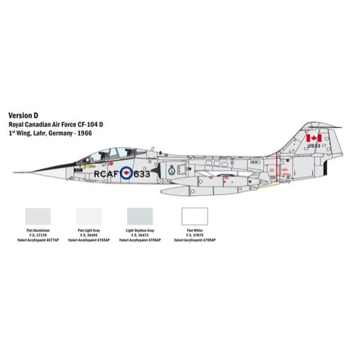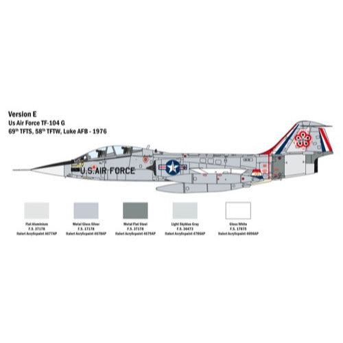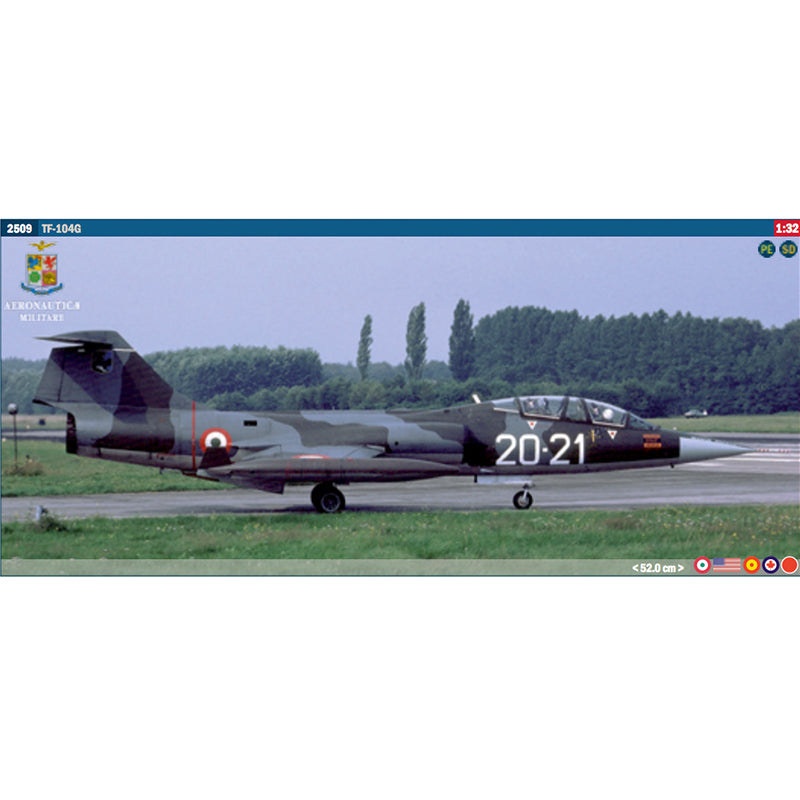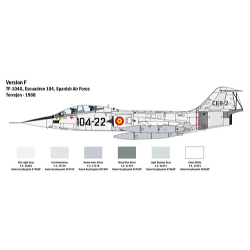 The Lockheed F-104 Starfighter is one of the most famous fighters in the history of aviation and also one with the longest operational life: its history began at the end of the 50s and ended, for some air forces, in mid 2000s. From its unique aerodynamic design, characterized by slender fuselage and very little wing surface, was developed the combat-capable two-seat advanced trainer version TF-104. Among the most widespread version, the TF-104G, produced by Lockheed was a fundamental training step for all the combat pilots before to seat in the F-104G or F-104S single-seat fighter version cockpits. Compared to the single-seat, the TF-104G didn’t have the 20 mm gun and the centerline pylon but, thanks to the General Electric J79 turbojet engine, the pilot and the trainer could have the same flight experience and performance of the fighter version. A lot of N.A.T.O. air forces used the TF-104G to perform training duties as Belgium, Holland, Norway, Spain, Turkey, Germany and Italy.