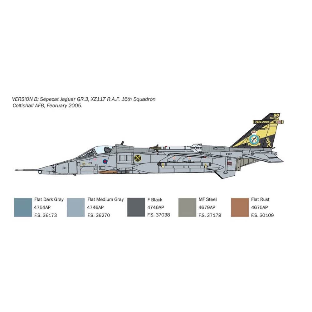 The Jaguar ground attack aircraft, born in the 1960s from a collaborative project of the French and British aviation industry, was used by the Royal Air Force until the late mid-2000s, demonstrating extraordinary longevity and operational efficiency. Thanks to its two turbojet engines it was able to reach and exceed Mach 1.6. It has been used, carrying out numerous missions, in operational areas characterized by a high level of complexity, including the Balkans and Iraq. In particular, the "all-weather" Jaguar Gr. 3 single-seater version has been significantly updated in avionics and has been equipped with terrain mapping and GPS tracking systems to optimize the role of ground attack aircraft.
