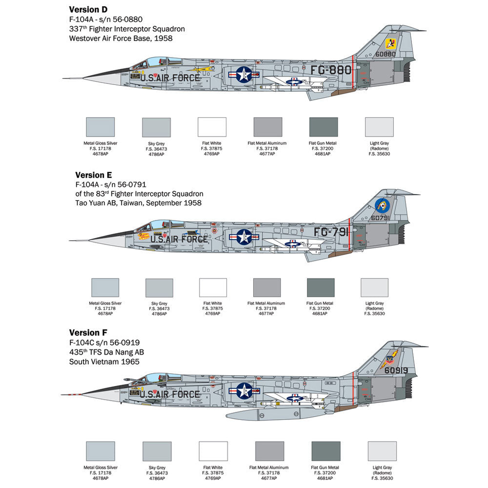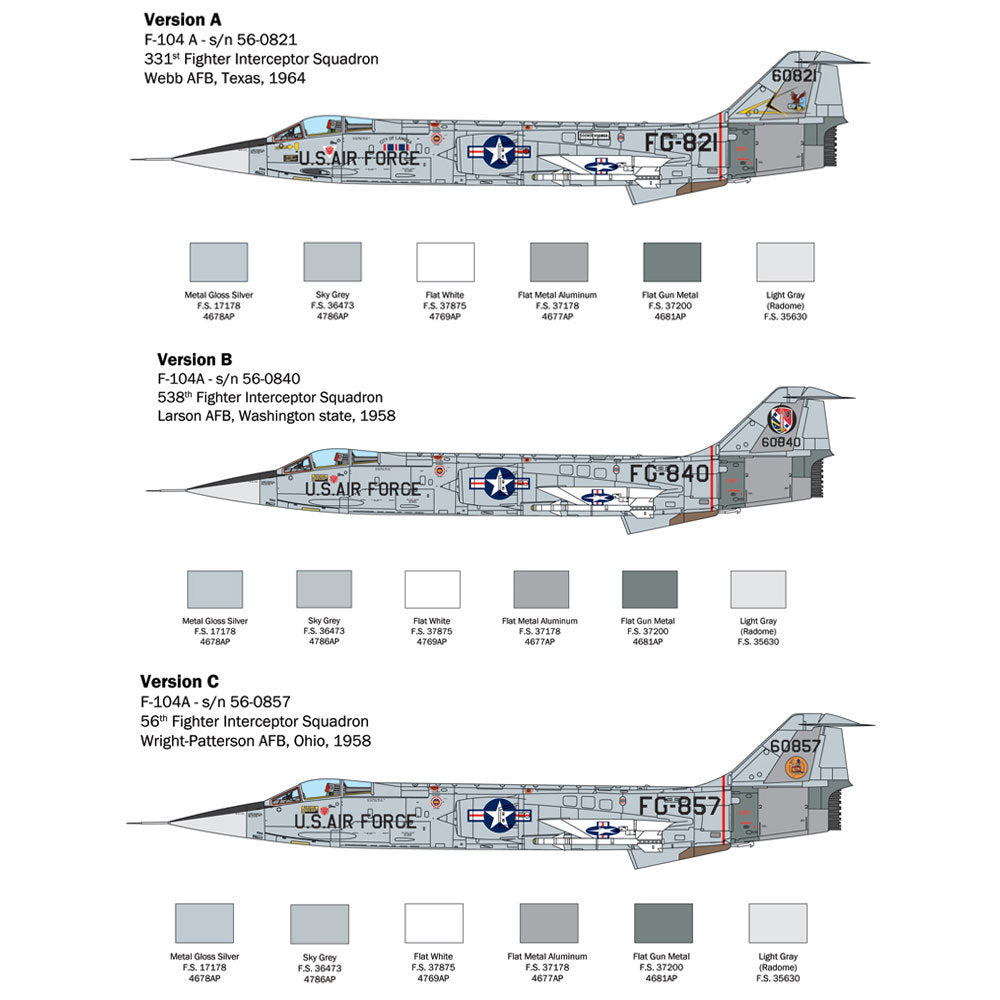 The supersonic interceptor aircraft F-104 Starfighter was, without doubts, one of the most famous, and long-lasting, aircraft in History. The F-104 entered in service in the late ‘50s and served with USAF for a long time. Later on, it has formed the fighter squadrons of several NATO air forces for more than 40 years. F-104A was the first version and it was used by USAF as supersonic interceptor in opposition to long-range soviet bombers. It entered in service in the late ‘50s. To the improved version, F-104C, was assigned the role of fighter-bombers and it was used during the early stage of Vietnam War. The “Starfighter” was based and developed on an original and unique concept for its time: innovative shape of the plane extremely thin, small, straight mid-mounted, trapezoidal wings, the stabiliator mounted atop the fin, a powerful and reliable General Electric J-79 turbojet engine able to guarantee outstanding supersonic performances.