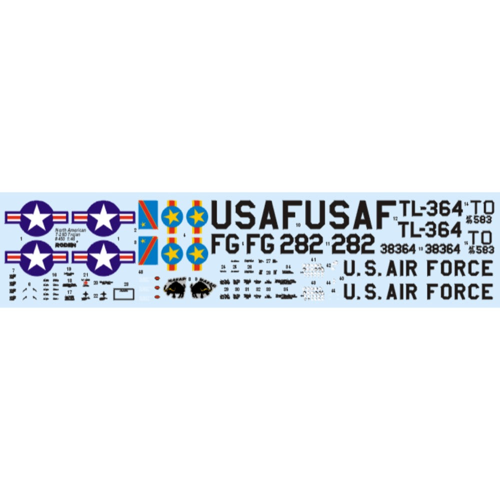In 1946 the North American firm offered the XSN2J project to the Navy, which had to replace the SNJ (the Navy's name for the T-6). A year later, the Air Force also decided to replace the T-6, and North American quickly modified a prototype to the army specification, becoming the T-28. The first test flights took place in September 1949 and their results more than satisfied the military. North American received an order for 266 machines, designated the T-28A Trojan. The airplane had a classic tandem seating arrangement, a large cockpit with an excellent view, and could carry a variety of ordnance on the pylons under the wings if required. The airplane appeared so successful, that the North American firm soon brought additional manufacturing plants on stream. By the mid 1950's almost 1,200 T-28A's were produced.At this time the American military felt an urgent need for an airplane that could be delivered to 'friendly' countries, and whose production would not require substantial expenditure. The T-28A was already considered out-of-date for the air arms of its own country at the beginning of 1961, but was the most suitable for that requirement. It had a more powerful (1425 hp) R-1820-56S engine, and the wing was strengthened to enable it to carry up to 4,000 pounds gross weight. In underwing pods were set two 0,5 caliber machine guns with 1,000 rounds ammunition each, while it was possible to suspend bombs on six underwing pylons; or rockets, napalm containers, and other ordnance. The increased take off weight included the mounting of 177-gallon underwing fuel tanks. Sights were installed in the cockpit, and also the airframe was toughened up, with armor protection for the crew in the most vulnerable areas.