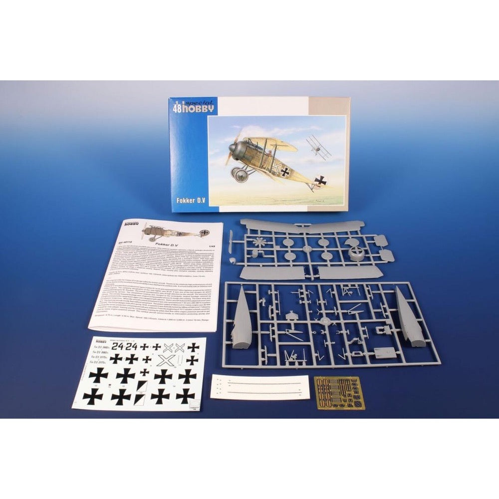Limited reissue of the Special Hobby 1/48 scale Fokker D.V kit with markings for three German aircraft.