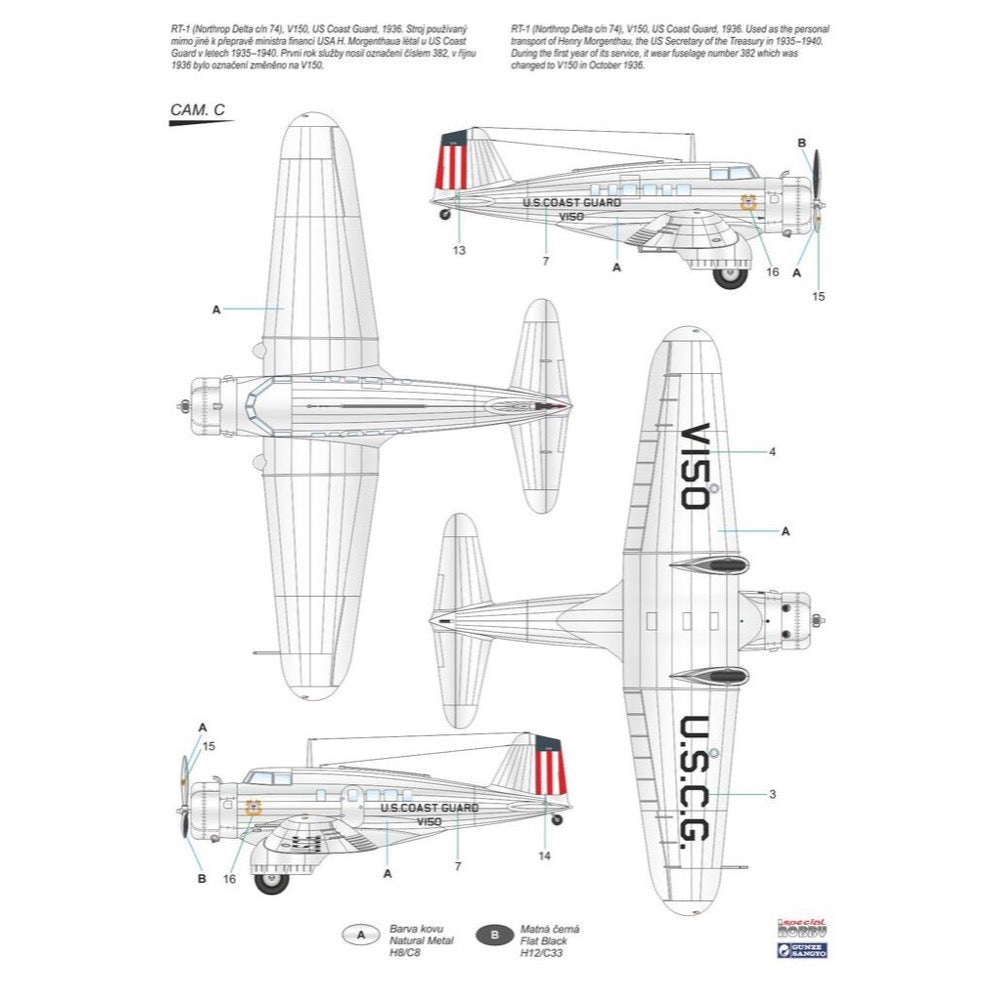 In 1932 Jack K.Northrop, a famous american aircraft designer, followed his earlier and successful cargo and mail types the Alfa and Gamma and designed a new one, named the Delta. It was a all-metal, single engined low-wing monoplane with fixed undercarriage covered in spats. The type was intended to be used on short domestic routes and was built in several versions, differing by their powerplant and also the shape of the pilot’s cockpit canopy. First versions known as the Delta 1A, 1B and 1C featured narrow canopy housing only one pilot. Following versions, the 1D and 1E already had a wider cockpit enabling a crew of two to sit there and they also had a much massive dorsal section of the fuselage. Unfortunatelly, one of the first Delta 1A machines crashed in Mexicowhile being delivered to the customer. This accident was also one of the reasons for the US government to ban the usage of single engined types for regular passenger transport. Aircraft already produced were bought by private subjects or used by companies for business trip purposes. One of the Delta 1Ds, with construction number 74, was used by the US Coast Guard and later it was handed over to the US Corps of Engineers and flown in Ethiopia (Africa) during the Second World War. Delta 1D c/n42 first saw service with Ellsworth’s Antarctica Flight, then was bought by the Australian govenrment and following the outbreak of WW2 it was transferred to the RAAF. Some other Deltas were lucky to see war service even earlier as three of them were acquired by the Spanish government, though two of them fell into the hands of Spanish Nationalist Forces making the Delta the type to fight or be used on both sides of the conflict. In 1936, Canada bought licence rights, partially compensating for Northrop’s business failure with the type. The Canadian machines were produced by Vickers company in versions Mk.I to Mk.III