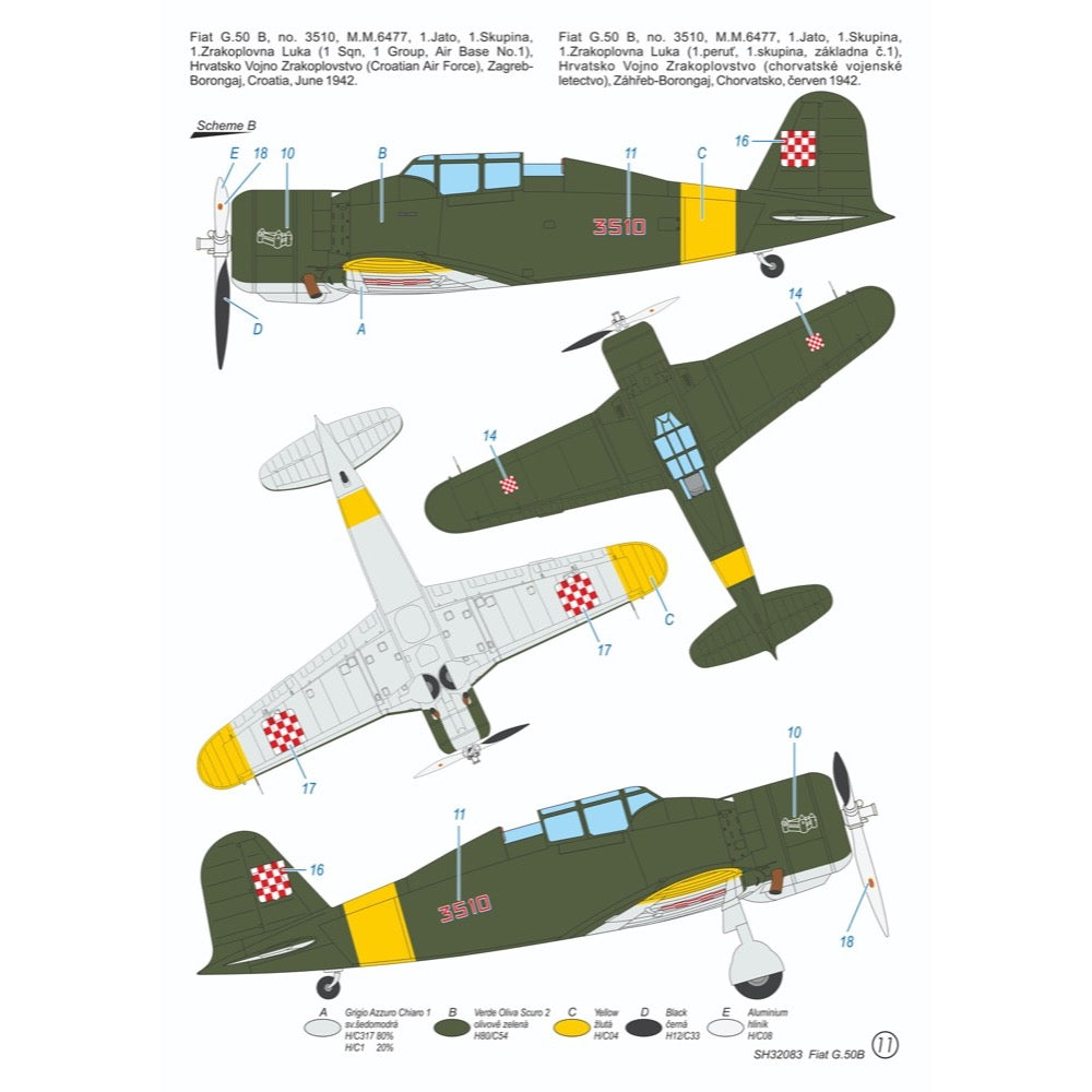 The model kit contains five grey styrene sprues, one with clear parts, finely detailed resin parts and etches. The decals cater for four marking options, machines of the Regia Aeronautica, Luftwaffe, Croatian Air Force and the post-war Italian Air Force.