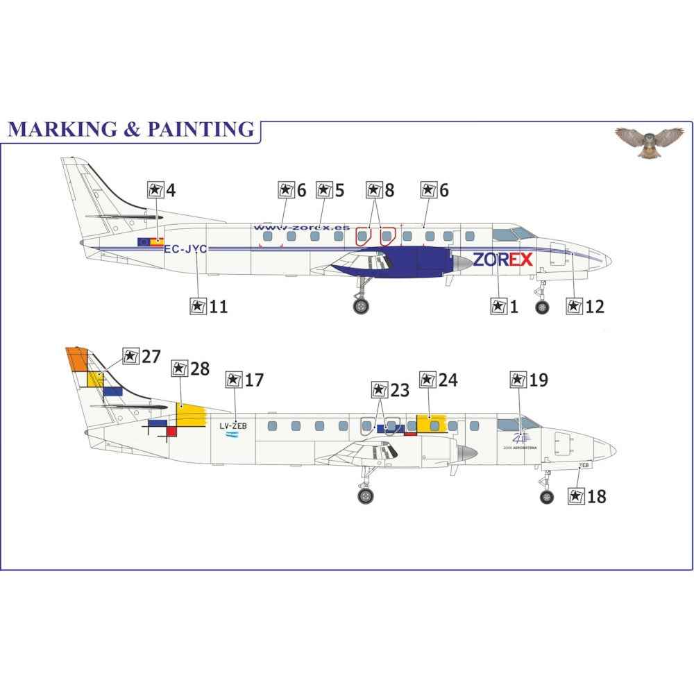 • Decal sheet for 2 liveries (CEDMA Aviacion and ZOREX Air transport services)