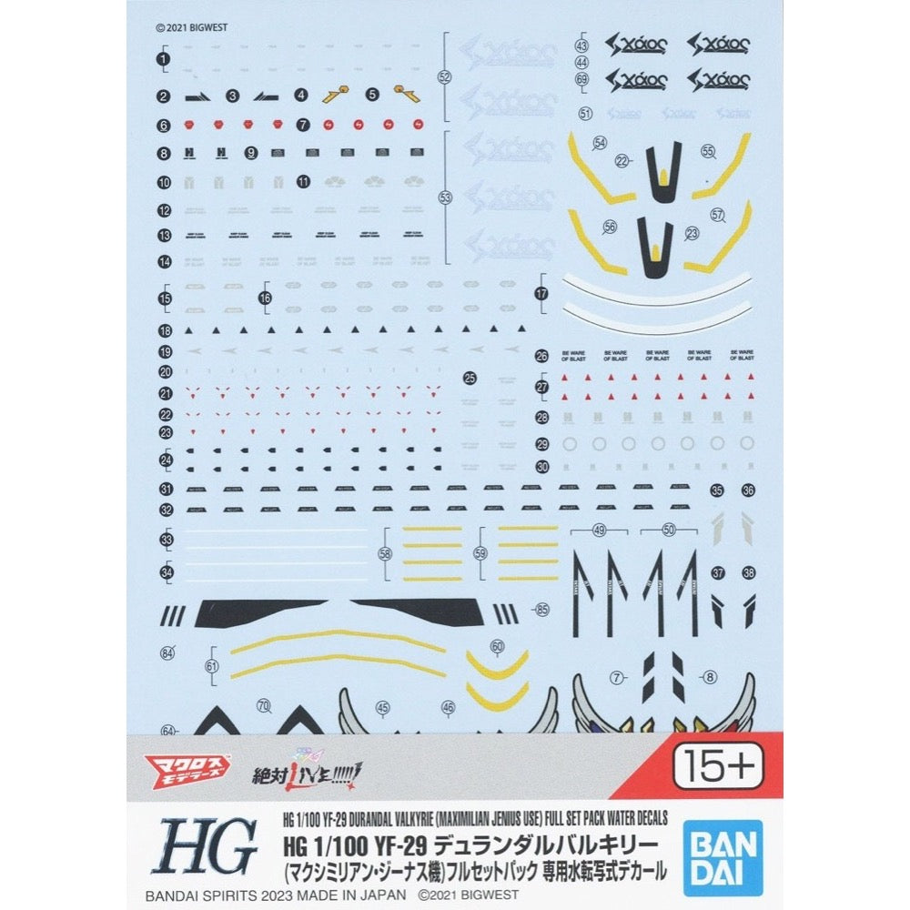 Bandai 50656921 HG 1/100 Yf-29 Durandal Valkyrie (Maximilian Jenius Use) Full Set Pack Water Decals