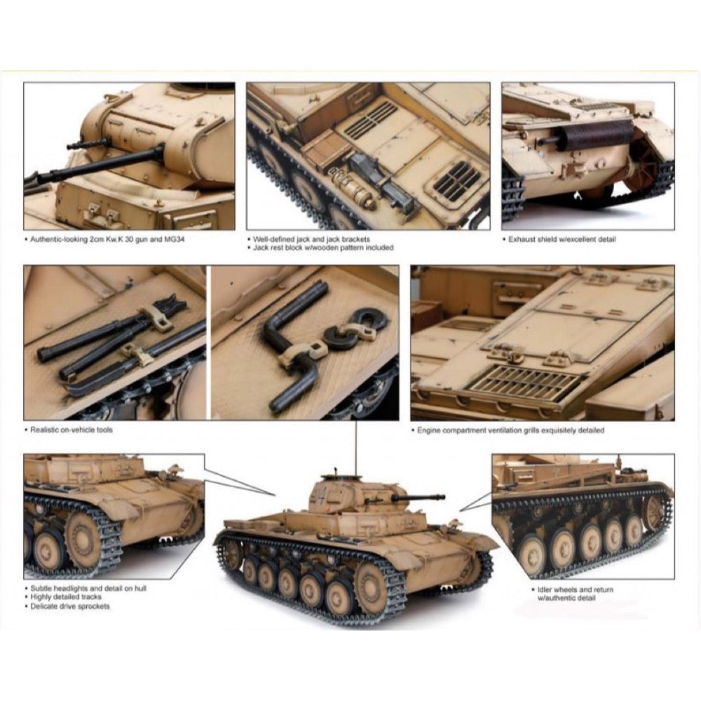 The first ever tank in Dragon’s 1/6 scale plastic kit lineup was the Panzer II Ausf.B (Item No.75025), which created worldwide excitement in the modeling and 1/6 action figure community! Now Dragon has doubled the number of Panzer IIs available with a second variant release! This time it’s a Panzer II Ausf.C, a type produced by Germany from June 1938 through till April 1940. It was operated by a crew of three, and the Ausf.C was the most common variant of the Panzer II family. In the turret were a 20mm KwK.30 cannon and a 7.92mm MG34 machine gun. Panzer II Ausf.C tanks were in the forefront of the German invasion of France in 1940, while a number were also dispatched to North Africa to fight with the legendary Deutsches Afrika Korps (DAK).