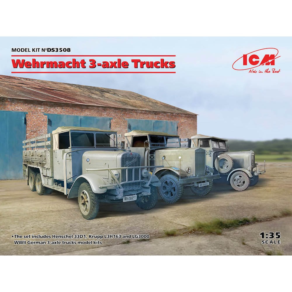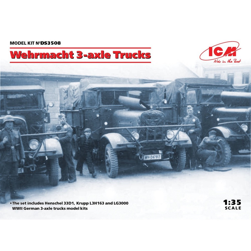 ICM DS3508 1/35 Wehrmacht 3-axle Trucks (Henschel 33D1, Krupp L3H163, LG3000)