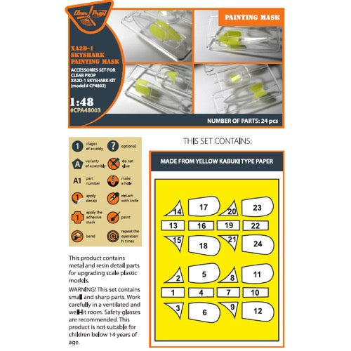 Clear Prop Models A48003 1/48 XA2D-1 Skyshark Painting Mask on Yellow Kabuki Paper