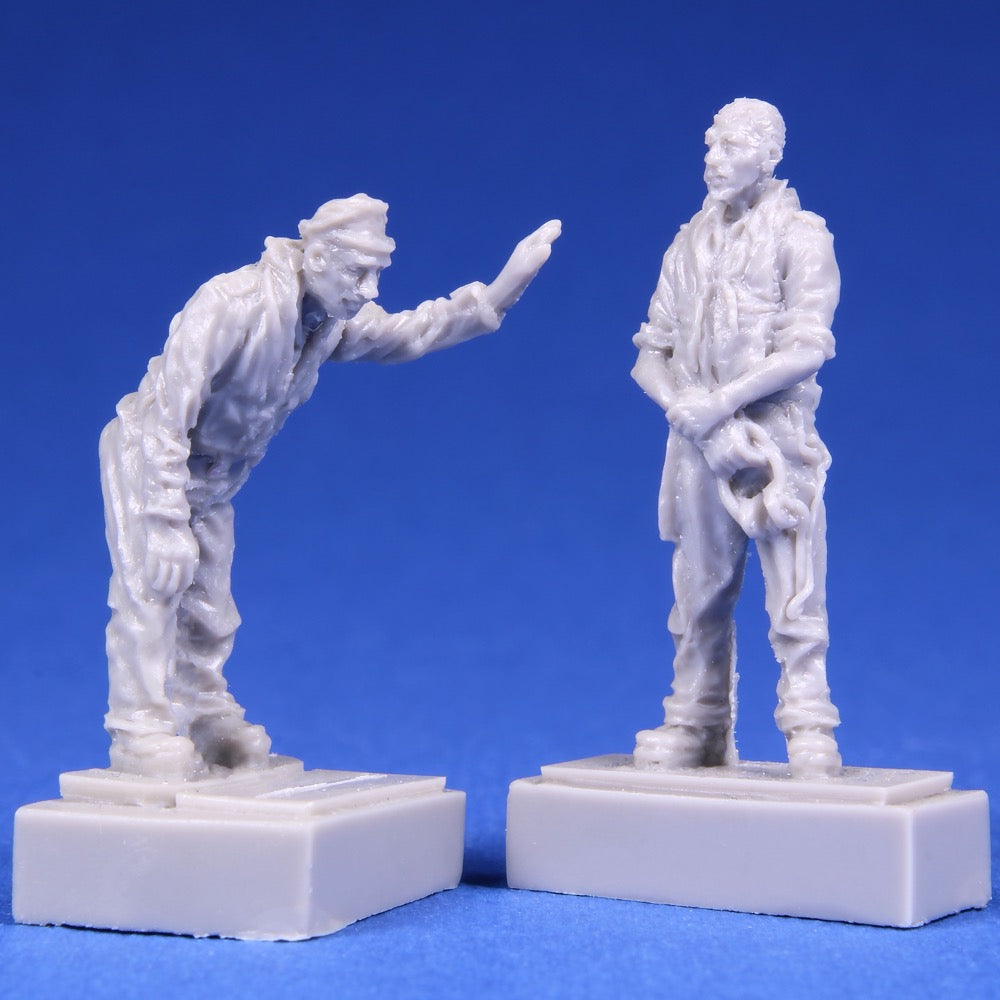 Two RAAF crew members about to get into their A-20 Boston. The pilot is standing on the fuselage while the gunner is bending down so that he could board the plane via the belly entrance. These fugures are sculpted to fit the Special Hobby A-20/DB-7C models or some other RAAF aeroplanes of the era.