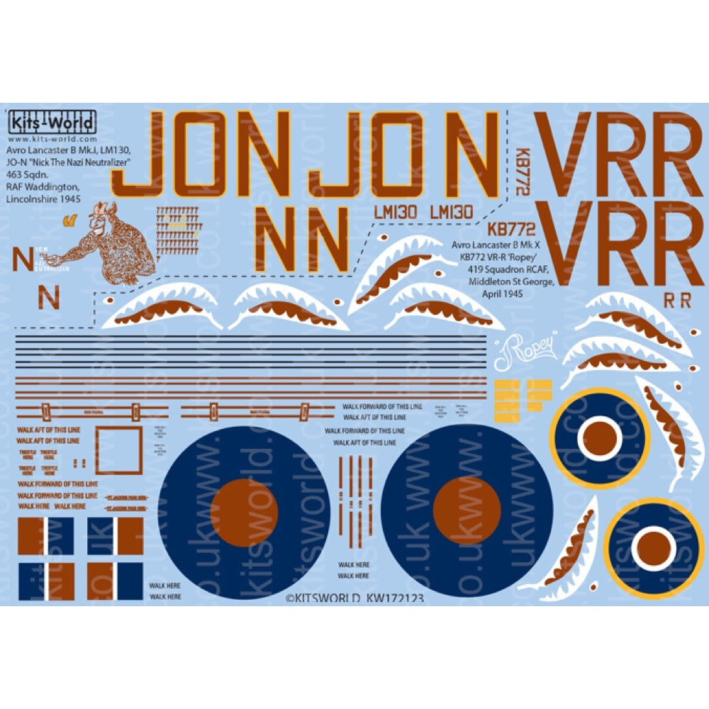 Kits-World 72123 1/72 Avro Lancaster B.I LM130, JO-N 'Nick The Nazi Neutralizer' 463 Sqn, B.X KB772 VR-R 'Ropey' 419 Sqn