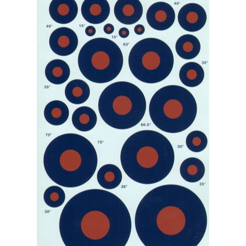 RAF National Insignia/Roundels B Type. Sizes 15" , 25" , 30" , 32" , 35" , 40" , 44" , 48" , 49" , 50" , 56" , 59" , 63" , 66.5" , 75" , 100" Double sheet.(RAF Roundels)