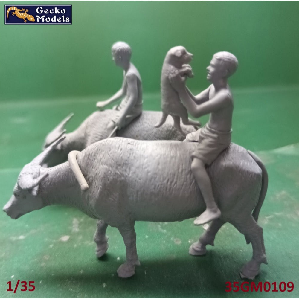 Gecko Models 35GM0109 1/35 60s-70s Vietnamese Children Puppy and Buffalo