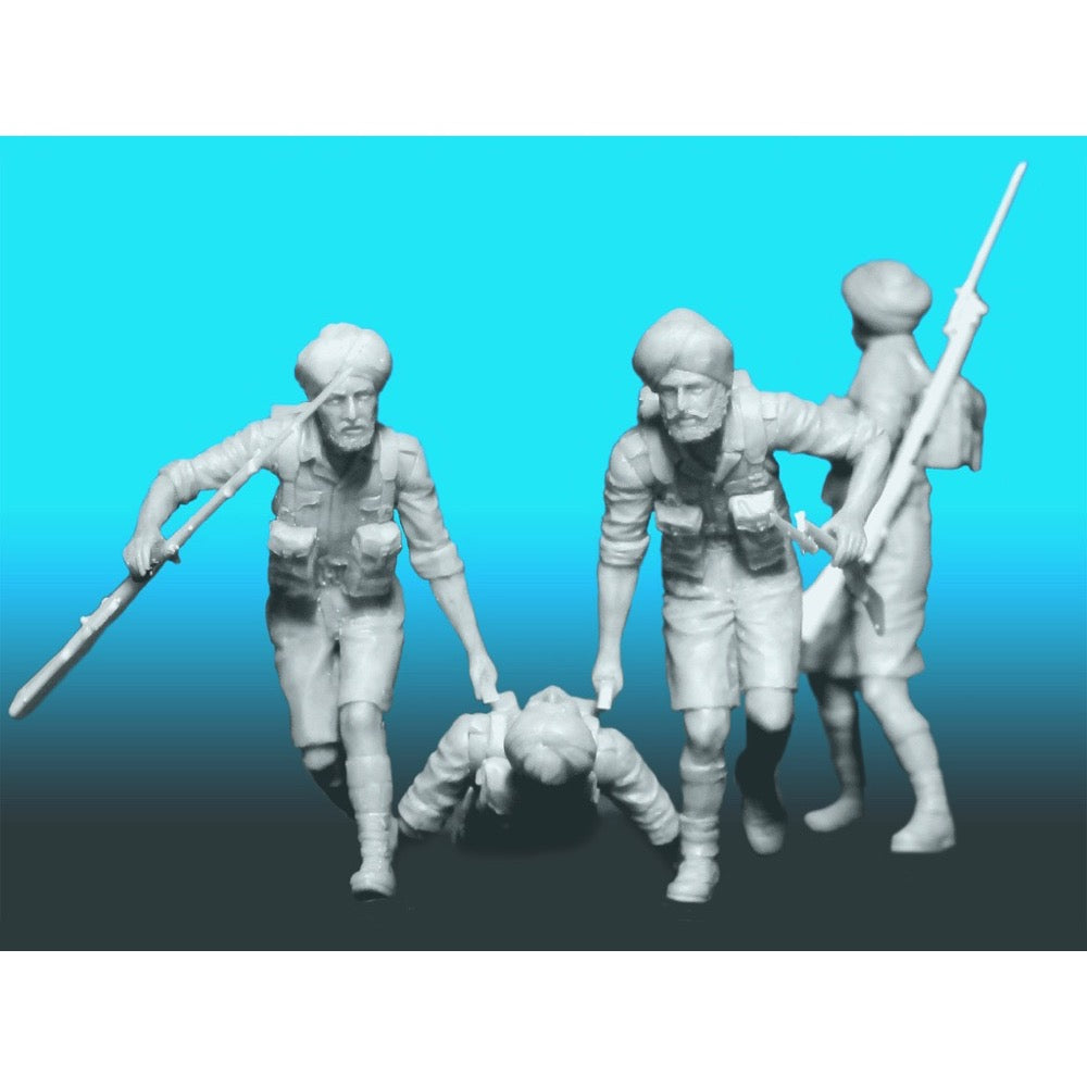 The set includes 53 parts for assembly of four figures of Indian Sikh Rifles of 1942.