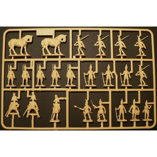 The elite regiment of the Pavlosky Grenadiers parades before the Tzar Alexander 1st of Russia and the Austrian Emperor Francis 2nd. This could be a scene before the battle of Austerlitz in December 1805, when the allies of the third coalition clashed with Napoleon's Grande Armée.