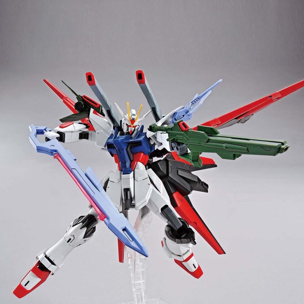 As the name implies, the Gundam Perfect Strike Freedom brings together design points from the Perfect Strike and Strike Freedom Gundams. This kit is chock full of accessories for display options, including a lead wire you can use to replicate the claw firing gimmick in the shoulder!