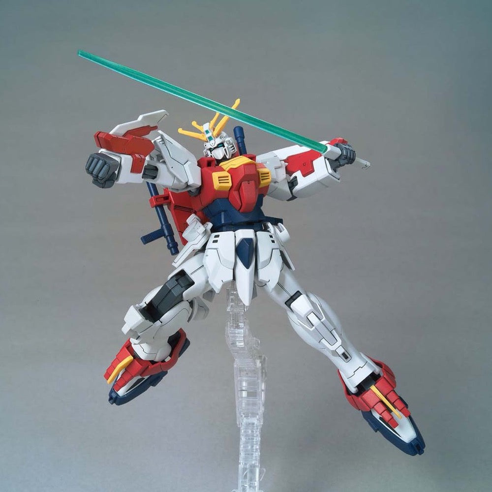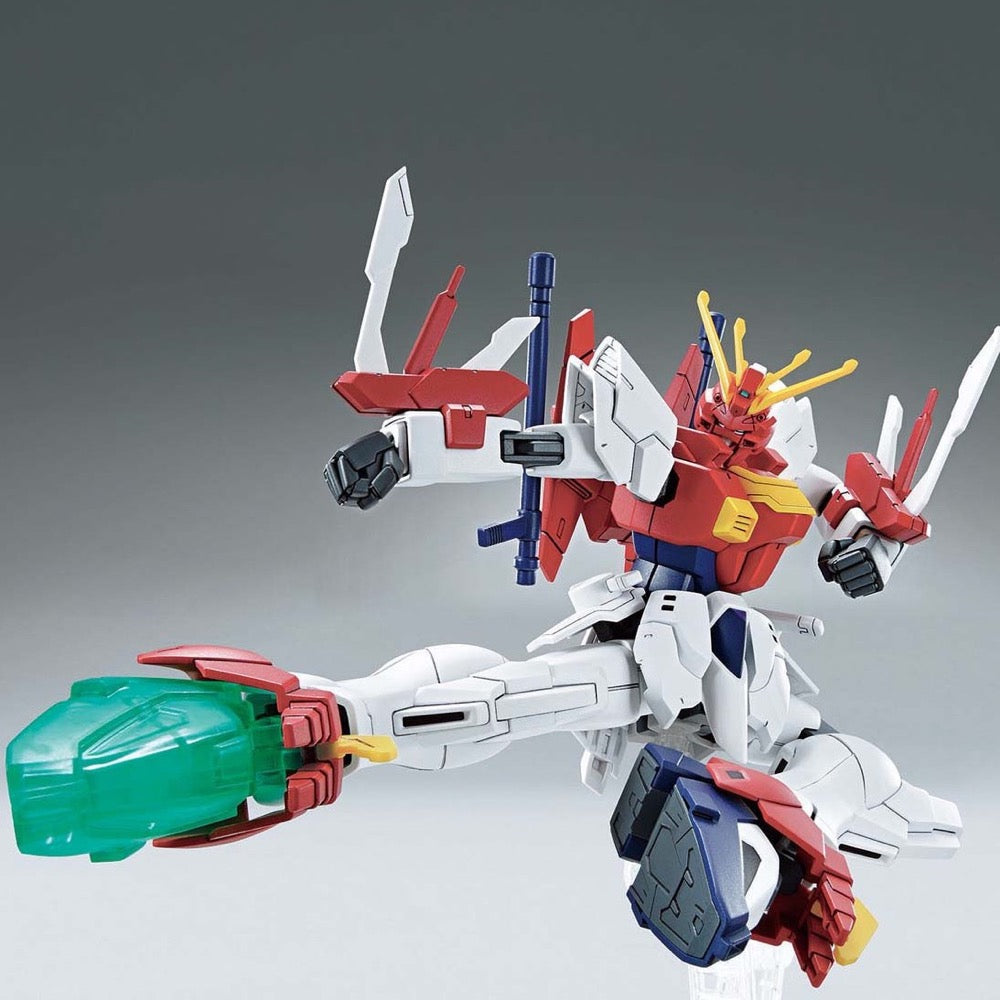Original mecha from this project are now being released as HG model kits from Bandai, able to be customized just like in the game! Blazing Gundam is customized with the concept of God Gundam's "brother" machine, and is inspired by "brother" pairs such as Rising Gundam and Shining Gundam. The joints allow for a wide range of movement, and emerald-green foot parts are included for its special foot attack technique! It's also equipped with a pair of beam tonfas, with clear green parts. This kit can be built with a maskless head if you prefer as well.