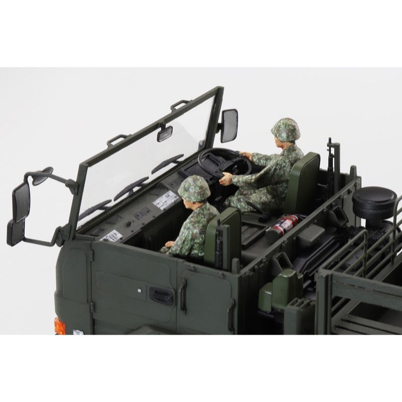 This 3-1/2-ton truck is a general purpose heavy-duty truck operated by the Japan Self-Defense Forces. Previously, it was procured as a Type 83 heavy-duty truck, but it was renamed the 3-1/2-ton truck in 2003. The Ground Self-Defense Force deploys it in almost all units regardless of occupation, including ordinary, armor and special departments, and it is also used by the Maritime Self-Defense Force and the Air Self-Defense Force. Its high durability and ability to run on rough terrain greatly contribute to disaster dispatch and lifesaving in various locations.