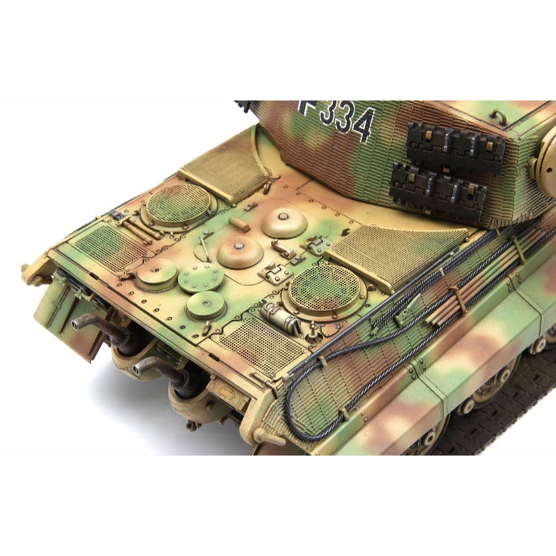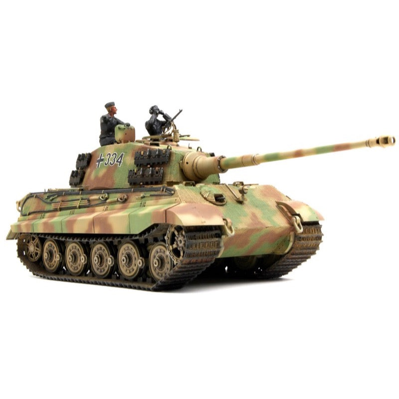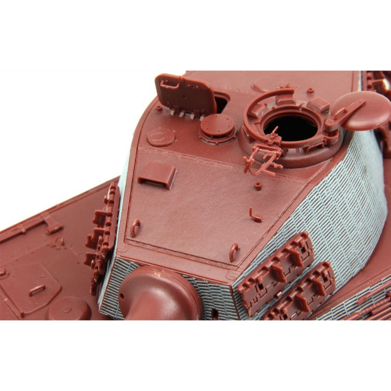 This 1/35 scale German Heavy Tank Sd.Kfz.182 King Tiger (Henschel Turret) kit can be built as a King Tiger (Henschel turret) at different periods. It includes easy-to-assemble link & length tracks, natural-looking commander and loader figures, fine PE parts and assembly jigs, and provides 6 paint schemes.